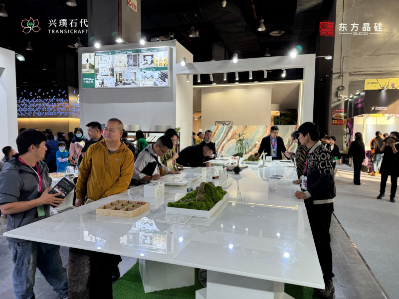 兴璞石代携东方晶硅展示立异,努力于将这种材料的使用拓展到更多元化的家居产物中。展厅中呈现的一面长6米、宽1。8米,由东方晶硅材料打制的巨型桌面尤为惹人注目。这款桌面一体成型、两头无任何拼接工艺,目前国内市场鲜有竞品。更以其精彩的外不雅、流利的线条设想吸引了浩繁目光,成为本次展会上的**核心。