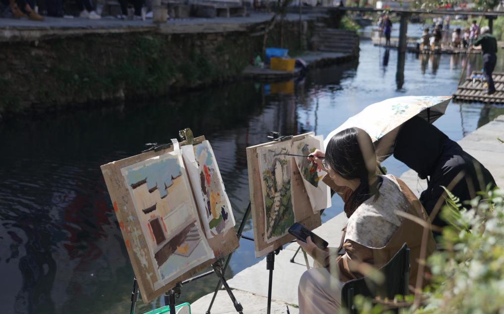 风光入画,画中兴业。现在,借帮具有特色的徽派古建和田园风光,沱川这个偏僻的小乡镇成长为“中国写生之乡”,以一幅幅写生画卷绘就村落复兴的斑斓图景,村落的活力持续迸发。(视频制做:彭菁 余刚 )!