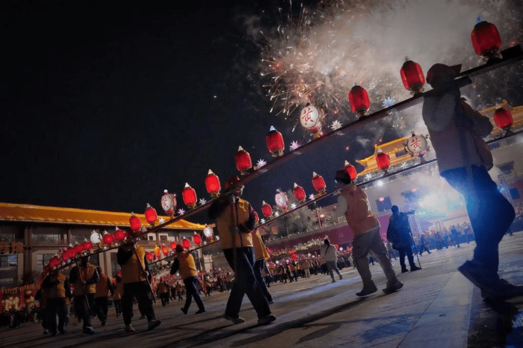 当逛灯正式起头后,锣鼓开道,“灯龙”流动,排场蔚为宏伟。村平易近们会正在口烧起柴禾,点上鞭炮,红红火火驱逐逛灯步队。整个步队连绵数千米,声势浩荡,当圈灯“盘龙”时,龙身龙尾紧相随,由缓至急,按照顺时针标的目的回旋,一圈复一圈构成旋圆,动静连系,首尾呼应,把元宵推向。